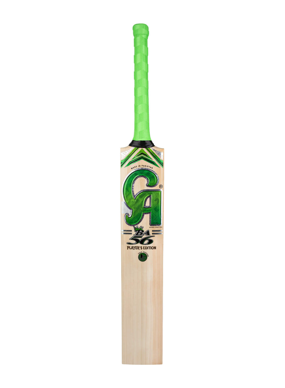The BA 56 Player Edition English Willow Bat, designed for Babar Azam, combines power and precision for serious players. Made from Grade 1 English willow with 8 straight grains, it supports aggressive play while its balanced weight ensures effortless swings. The bat features Reverse Lock technology and a grooved green grip for a secure, comfortable hold, along with Toe Glass Protek Technology for enhanced durability. It comes with a stylish designer carry bag for convenience.